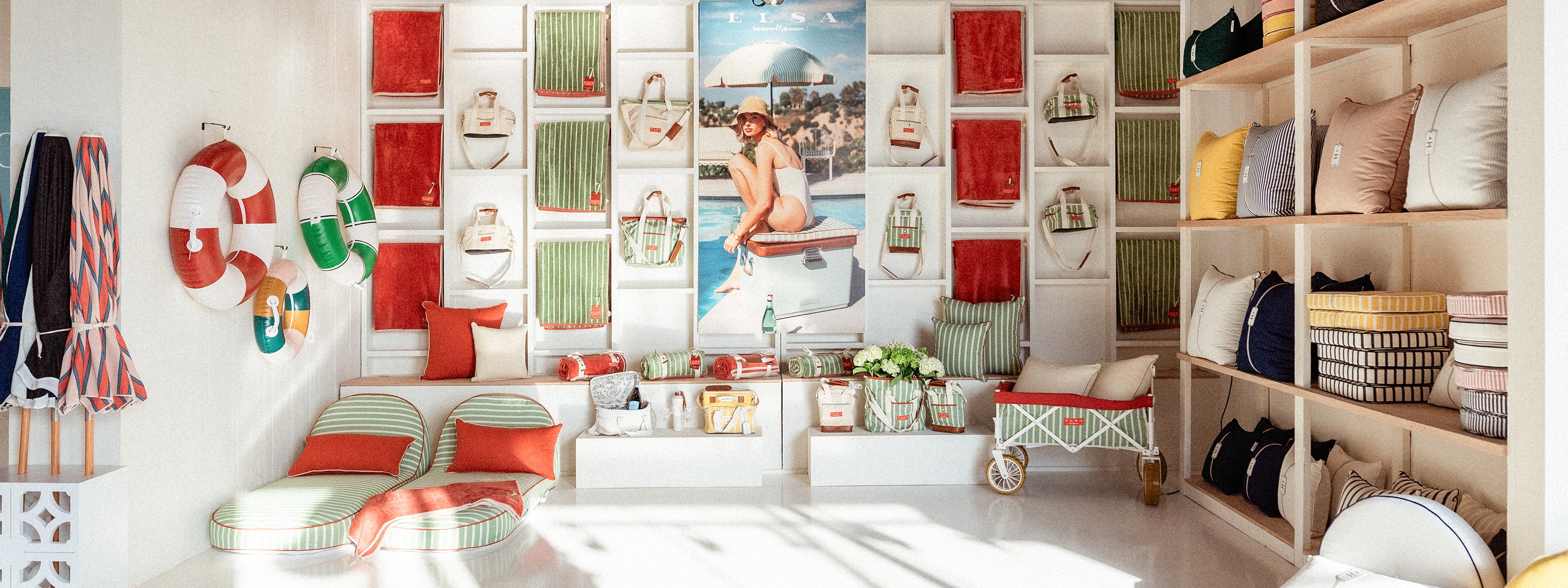 This 4000+ sqft showroom has been custom fitted to exhibit all the latest from the B&PCo. range and is fully stocked with all our home and beach umbrellas, outdoor furniture, coolers, carts, towels, and accessories - All available to buy in store, or have delivered straight to your home!