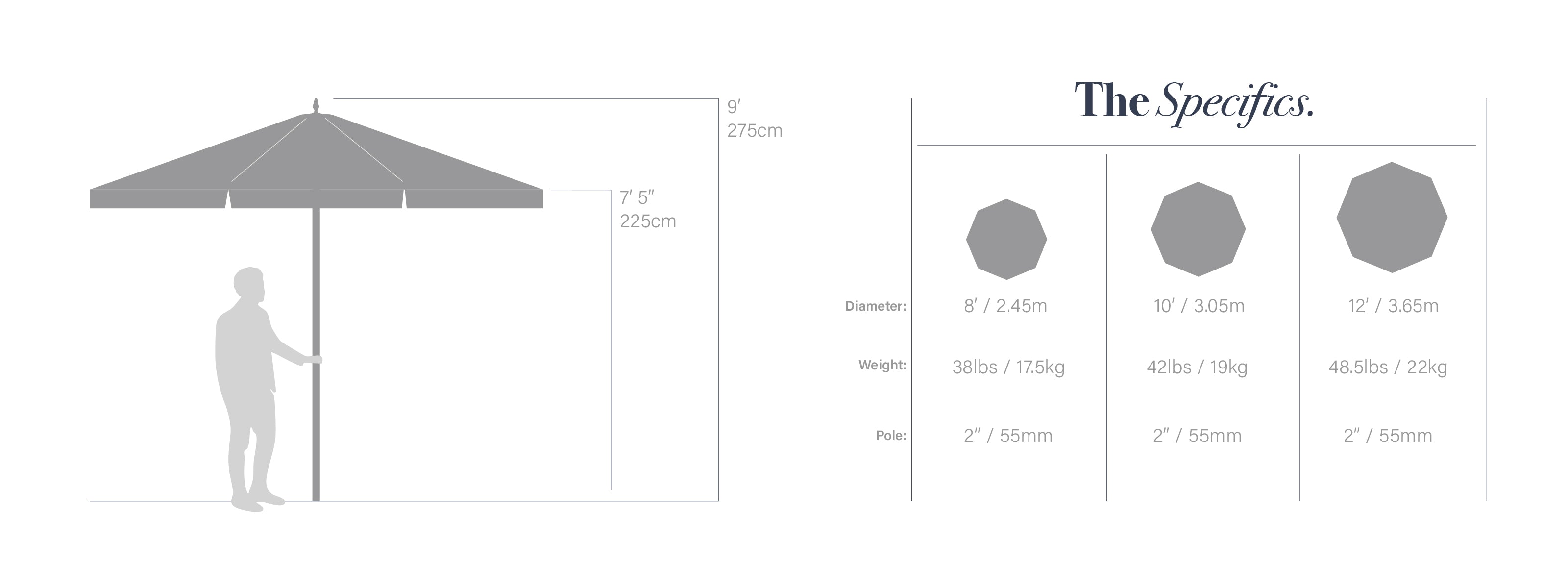 Crafted with a marine-grade canopy and a precision-built frame, this umbrella is made to endure the elements while elevating any outdoor space with its refined presence.